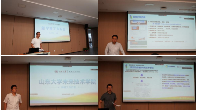 会上,刘斌首先向学院全体教职工传达了2024年校领导班子暑期工作务虚会(读书班)暨秋季学期工作会议精神,对标学校重点工作任务和具体工作要求,对下半年工作作出计划和部署。他要求,要认真贯彻落实党的二十届三中全会精神和学校第十五次党代会精神,以正视问题的自觉和刀刃向内的勇气,推进学院党建、学院治理、人才引育、教学科研等各项重点工作。希望学院全体教职工要凝聚思想共识、提高政治站位,坚定信心、振奋精神,高质量完成学院各项既定任务目标,赋能学院向好向上发展。石少帅、刘人太、袁超分别就学院研究生工作、科研工作和本科专业建设工作进行专题汇报。