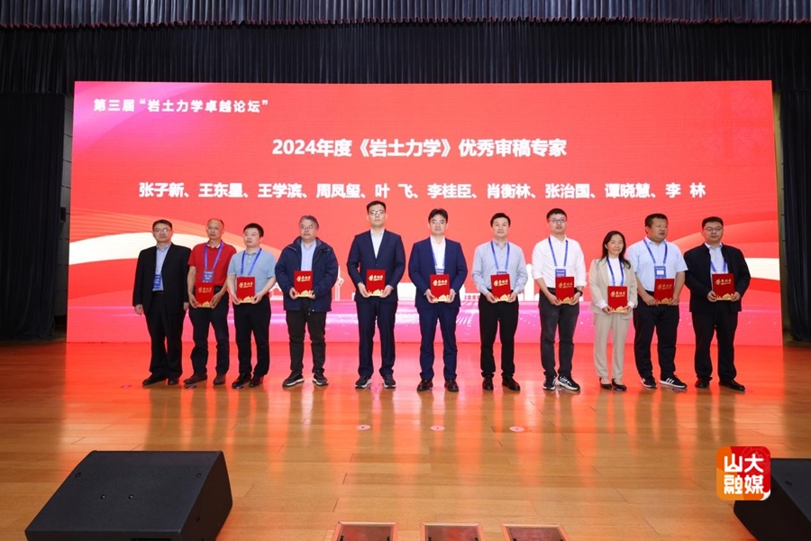 论坛还举行了《岩土力学》优秀审稿专家颁奖仪式。薛强、《岩土力学》主编孔令伟为2024年度《岩土力学》优秀审稿专家颁奖。